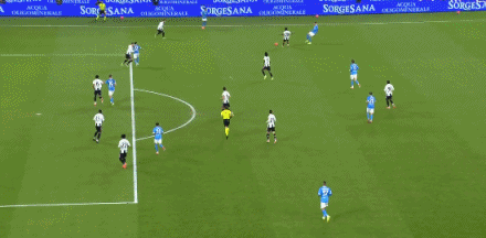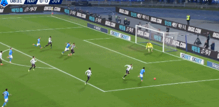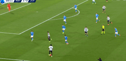 第7分鐘,內雷斯下底橫傳,霍伊倫門前包抄破門!那不勒斯1-0尤文